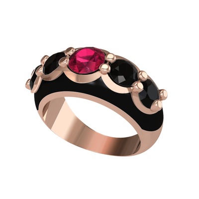 Rodolit garnet ve siyah zirkon 14 ayar rose altın yüzük (Siyah mineli)