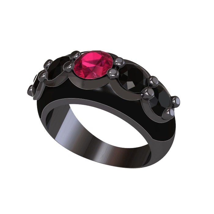 Rodolit garnet ve siyah zirkon 925 ayar siyah rodyum kaplama gümüş yüzük (Siyah mineli)
