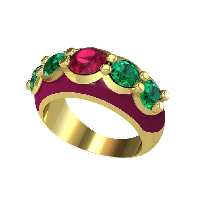 Rodolit garnet ve yeşil kuvars 8 ayar altın yüzük (Bordo kırmızı mineli)