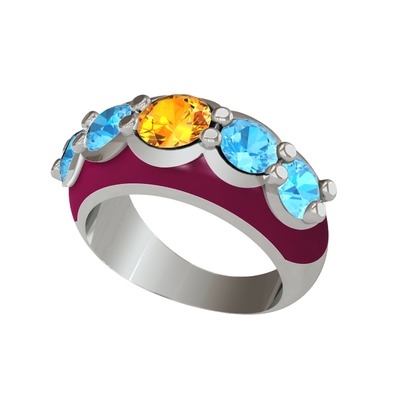 Sitrin ve akuamarin 18 ayar beyaz altın yüzük (Bordo kırmızı mineli)