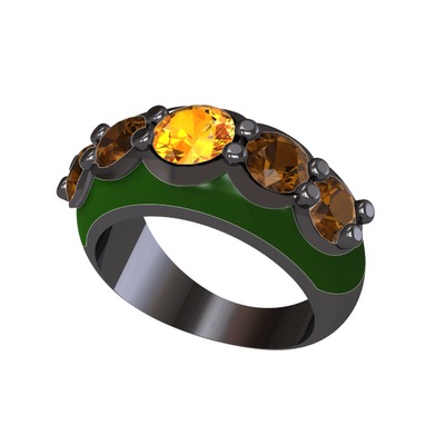 Sitrin ve dumanlı kuvars 925 ayar siyah rodyum kaplama gümüş yüzük (Yeşil mineli)