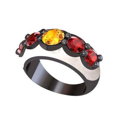 Sitrin ve garnet 925 ayar siyah rodyum kaplama gümüş yüzük (Beyaz mineli)