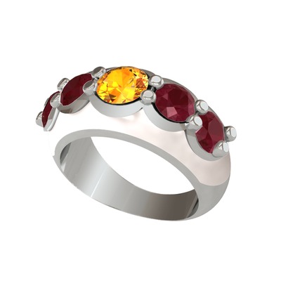 Sitrin ve kök yakut 18 ayar beyaz altın yüzük (Beyaz mineli)
