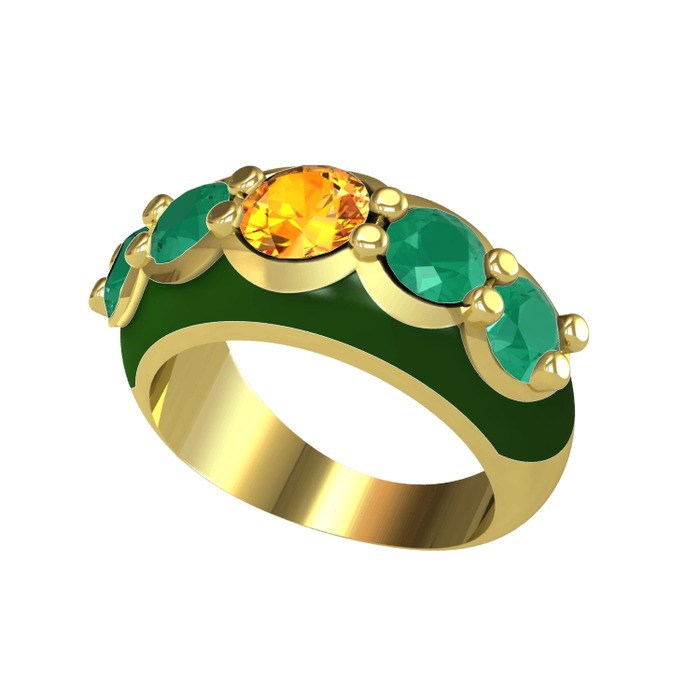 Sitrin ve kök zümrüt 14 ayar altın yüzük (Yeşil mineli)