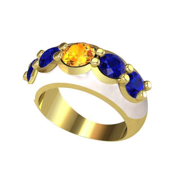 Sitrin ve lab safir 14 ayar altın yüzük (Beyaz mineli)