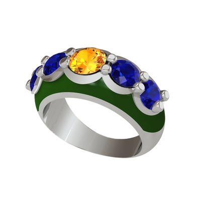 Sitrin ve lab safir 14 ayar beyaz altın yüzük (Yeşil mineli)