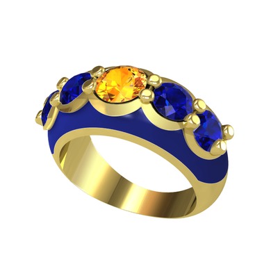 Sitrin ve lab safir 925 ayar altın kaplama gümüş yüzük (Lacivert mineli)