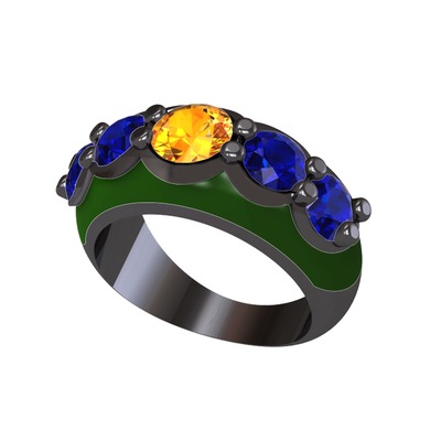 Sitrin ve lab safir 925 ayar siyah rodyum kaplama gümüş yüzük (Yeşil mineli)