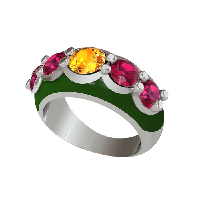 Sitrin ve rodolit garnet 14 ayar beyaz altın yüzük (Yeşil mineli)