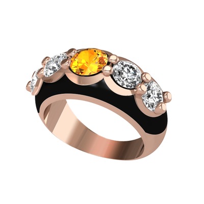 Sitrin ve swarovski 14 ayar rose altın yüzük (Siyah mineli)