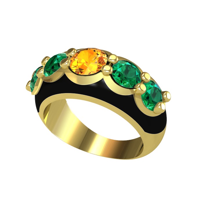 Sitrin ve yeşil kuvars 8 ayar altın yüzük (Siyah mineli)
