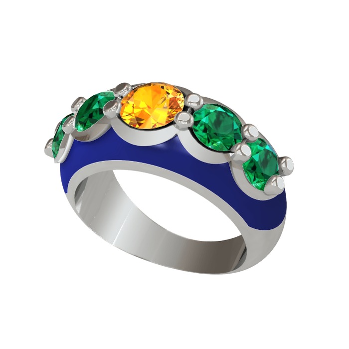 Sitrin ve yeşil kuvars 8 ayar beyaz altın yüzük (Lacivert mineli)