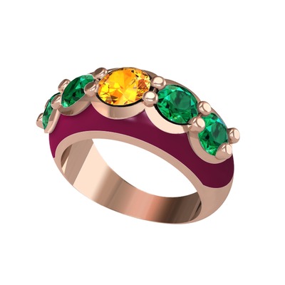 Sitrin ve yeşil kuvars 8 ayar rose altın yüzük (Bordo kırmızı mineli)