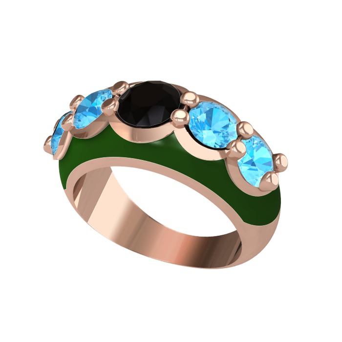 Siyah zirkon ve akuamarin 8 ayar rose altın yüzük (Yeşil mineli)