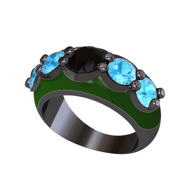 Siyah zirkon ve akuamarin 925 ayar siyah rodyum kaplama gümüş yüzük (Yeşil mineli)