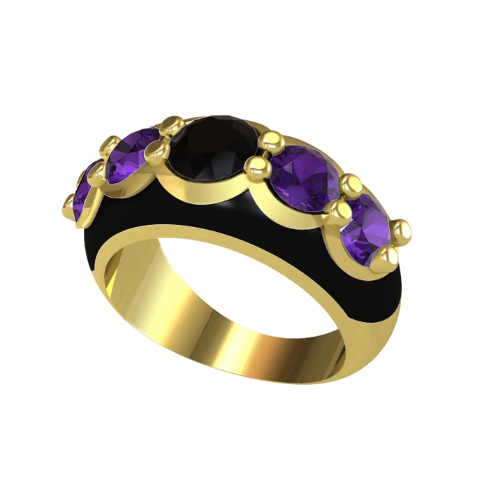 Siyah zirkon ve ametist 8 ayar altın yüzük (Siyah mineli)