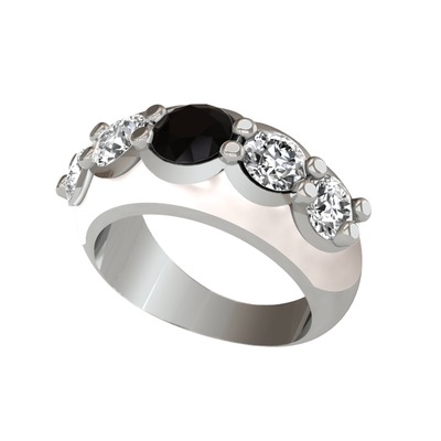 Siyah zirkon ve beyaz zirkon 925 ayar gümüş yüzük (Beyaz mineli)