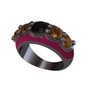 Siyah zirkon ve dumanlı kuvars 925 ayar siyah rodyum kaplama gümüş yüzük (Bordo kırmızı mineli)