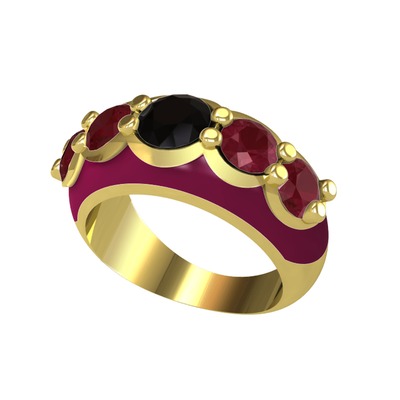 Siyah zirkon ve kök yakut 925 ayar altın kaplama gümüş yüzük (Bordo kırmızı mineli)