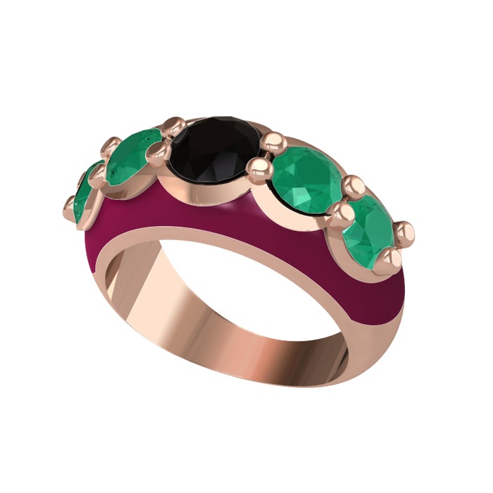 Siyah zirkon ve kök zümrüt 8 ayar rose altın yüzük (Bordo kırmızı mineli)