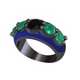 Siyah zirkon ve kök zümrüt 925 ayar siyah rodyum kaplama gümüş yüzük (Lacivert mineli)