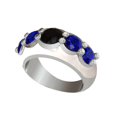 Siyah zirkon ve lab safir 18 ayar beyaz altın yüzük (Beyaz mineli)