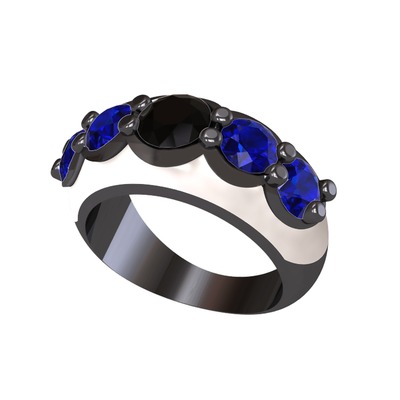 Siyah zirkon ve lab safir 925 ayar siyah rodyum kaplama gümüş yüzük (Beyaz mineli)