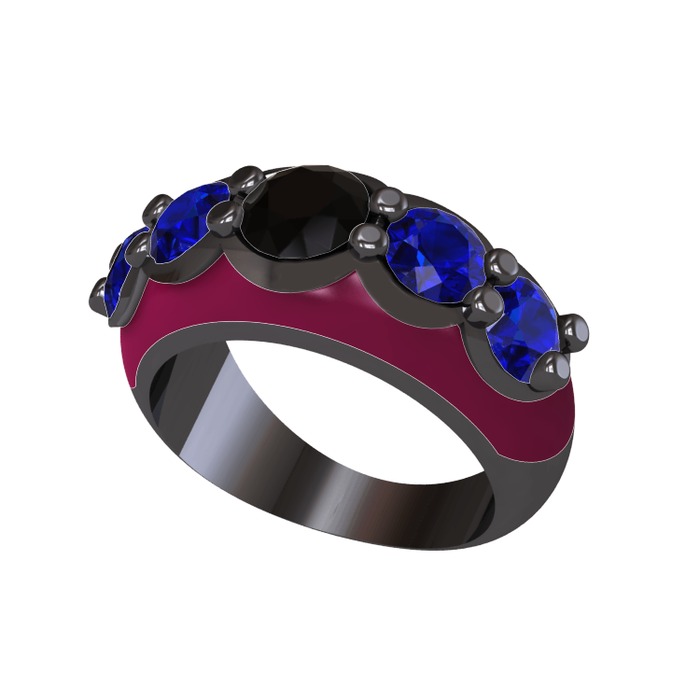 Siyah zirkon ve lab safir 925 ayar siyah rodyum kaplama gümüş yüzük (Bordo kırmızı mineli)