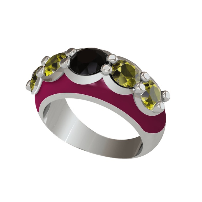 Siyah zirkon ve peridot 18 ayar beyaz altın yüzük (Bordo kırmızı mineli)