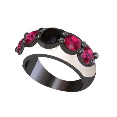 Siyah zirkon ve rodolit garnet 925 ayar siyah rodyum kaplama gümüş yüzük (Beyaz mineli)