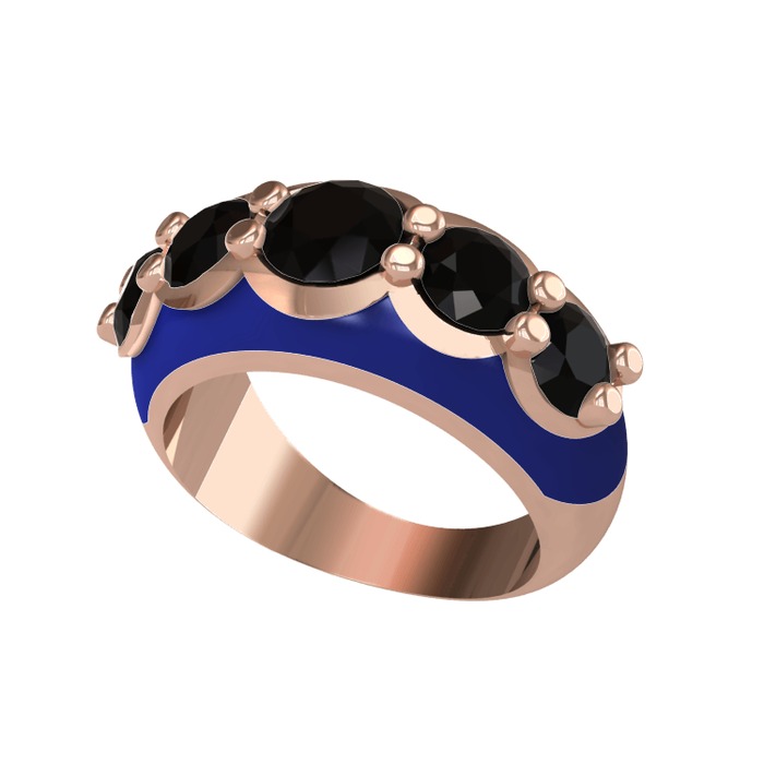 Siyah zirkon 925 ayar rose altın kaplama gümüş yüzük (Lacivert mineli)