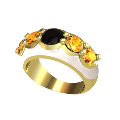 Siyah zirkon ve sitrin 18 ayar altın yüzük (Beyaz mineli)