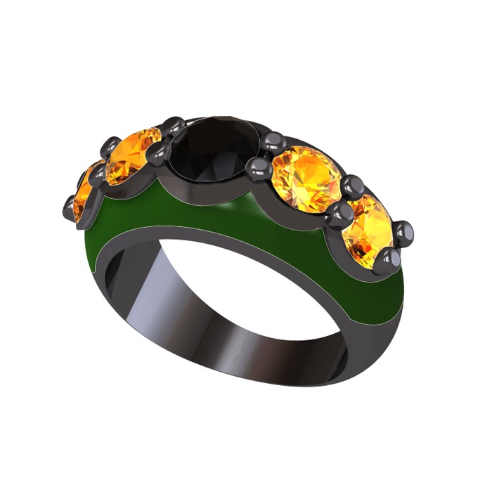 Siyah zirkon ve sitrin 925 ayar siyah rodyum kaplama gümüş yüzük (Yeşil mineli)