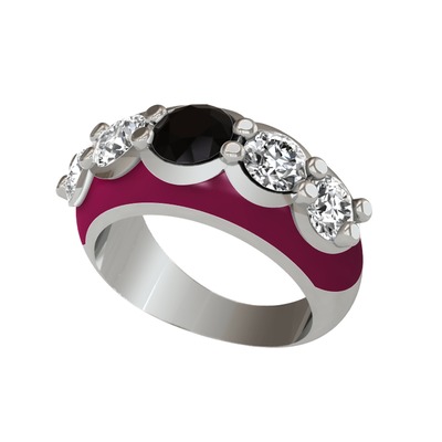Siyah zirkon ve swarovski 925 ayar gümüş yüzük (Bordo kırmızı mineli)