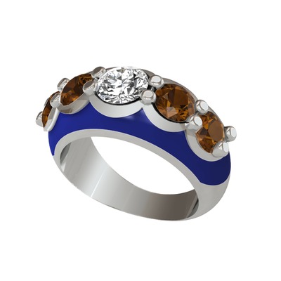 Swarovski ve dumanlı kuvars 8 ayar beyaz altın yüzük (Lacivert mineli)