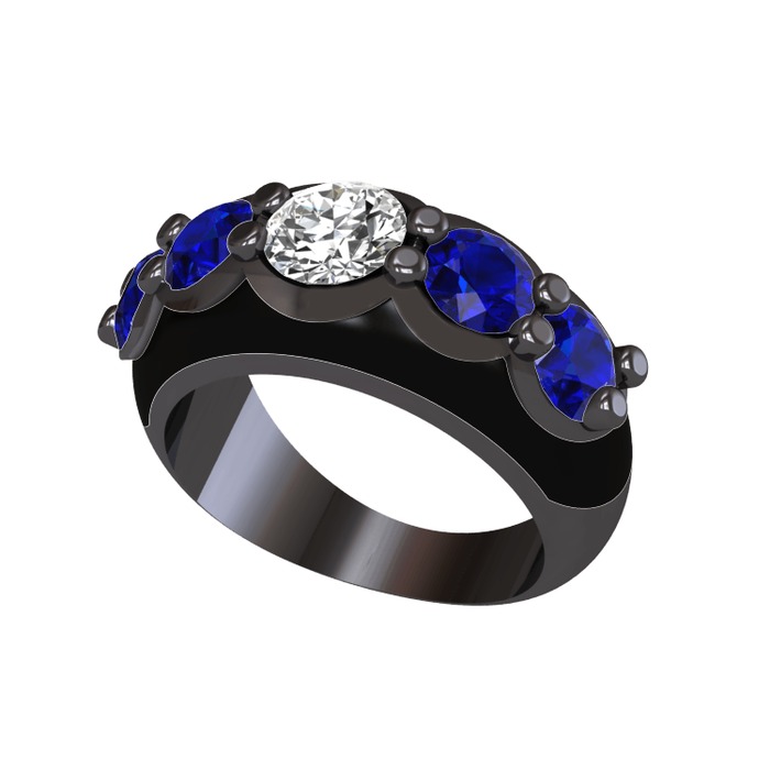 Swarovski ve lab safir 925 ayar siyah rodyum kaplama gümüş yüzük (Siyah mineli)