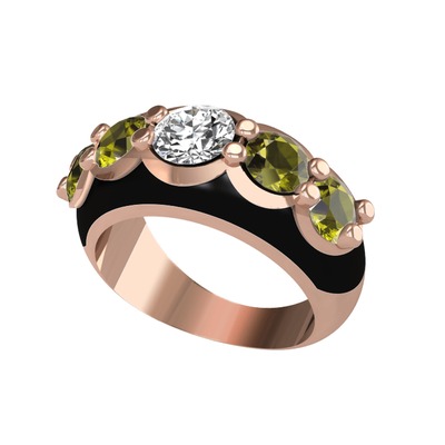 Swarovski ve peridot 8 ayar rose altın yüzük (Siyah mineli)