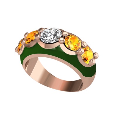 Swarovski ve sitrin 8 ayar rose altın yüzük (Yeşil mineli)