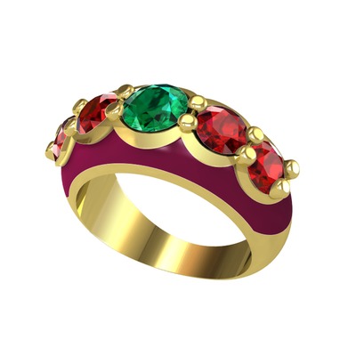 Yeşil kuvars ve garnet 925 ayar altın kaplama gümüş yüzük (Bordo kırmızı mineli)