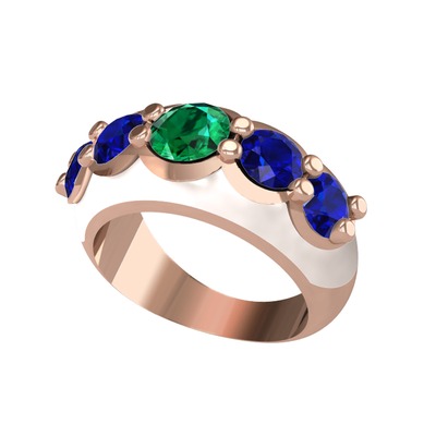 Yeşil kuvars ve lab safir 14 ayar rose altın yüzük (Beyaz mineli)