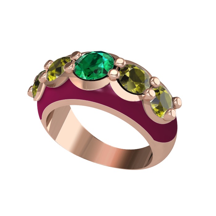 Yeşil kuvars ve peridot 14 ayar rose altın yüzük (Bordo kırmızı mineli)