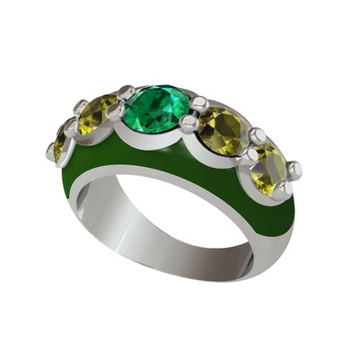 Yeşil kuvars ve peridot 18 ayar beyaz altın yüzük (Yeşil mineli)