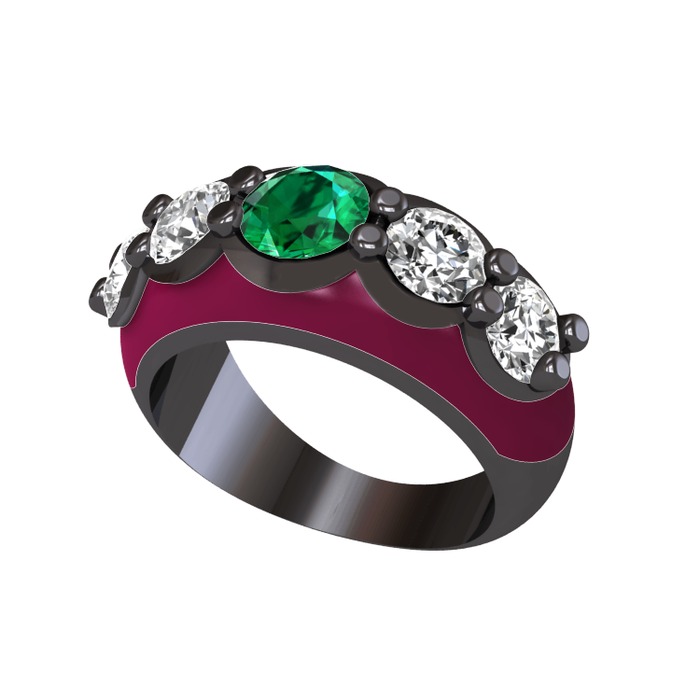 Yeşil kuvars ve pırlanta 925 ayar siyah rodyum kaplama gümüş yüzük (2 karat, bordo kırmızı mineli)