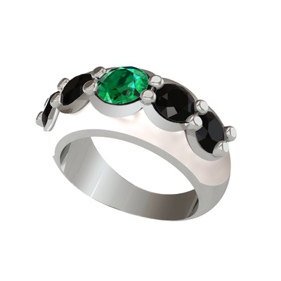 Yeşil kuvars ve siyah zirkon 925 ayar gümüş yüzük (Beyaz mineli)