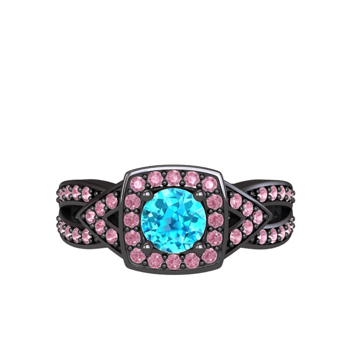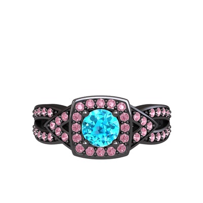 Akuamarin ve pembe kuvars 925 ayar siyah rodyum kaplama gümüş yüzük