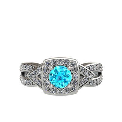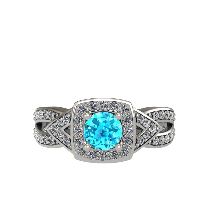 Akuamarin ve pırlanta 18 ayar beyaz altın yüzük (0.414 karat)