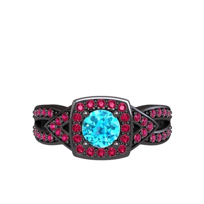 Akuamarin ve rodolit garnet 925 ayar siyah rodyum kaplama gümüş yüzük