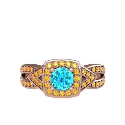 Akuamarin ve sitrin 14 ayar rose altın yüzük