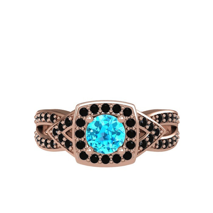Akuamarin ve siyah zirkon 8 ayar rose altın yüzük