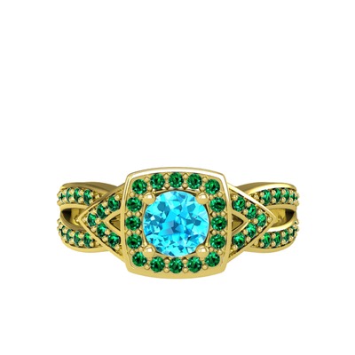 Akuamarin ve yeşil kuvars 14 ayar altın yüzük